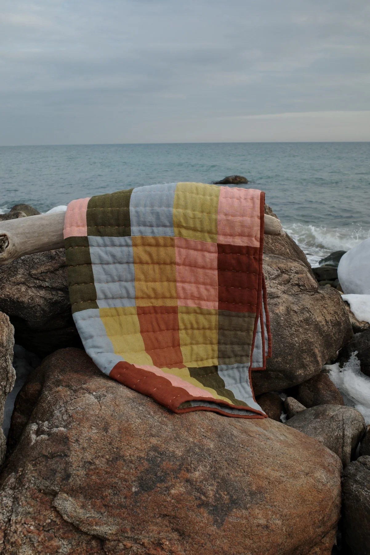 A small collection of slowly hand-dyed linen and hand-sewn big stitch quilts filled with 100% wool batting. Featuring my original designs.